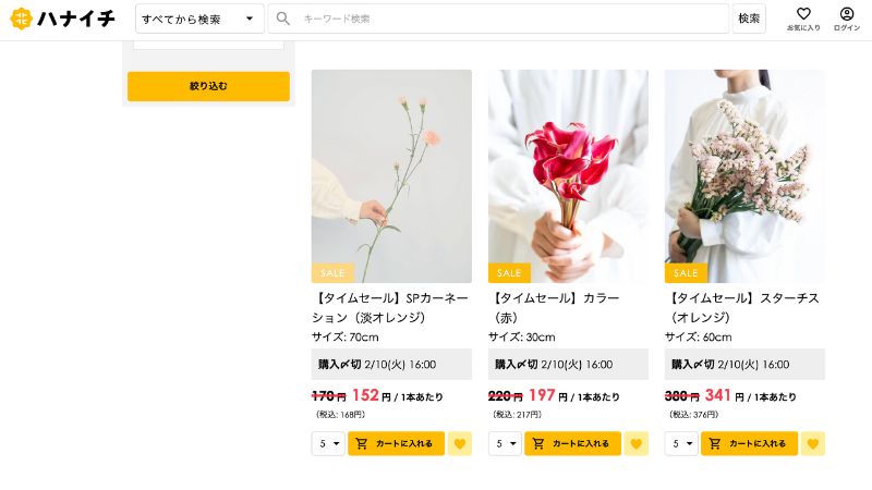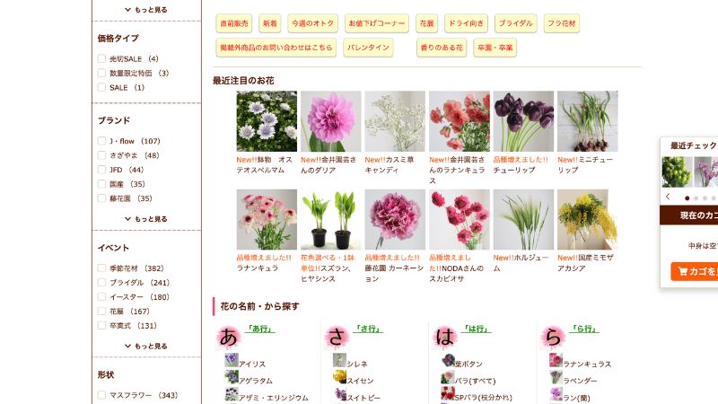 また、「今から一番早くお届けできる花はこちら」というコーナーでは、入荷予定または入荷後の在庫商品が、お得な価格で販売されていることもあります。