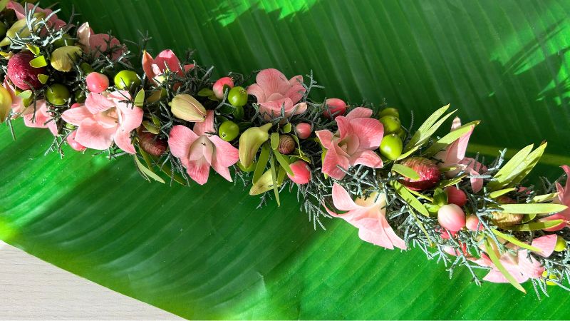 「この花束でレイを作ったら、こんな雰囲気かな」と、仕上がりをイメージしやすいのが、とても素敵だと感じました。