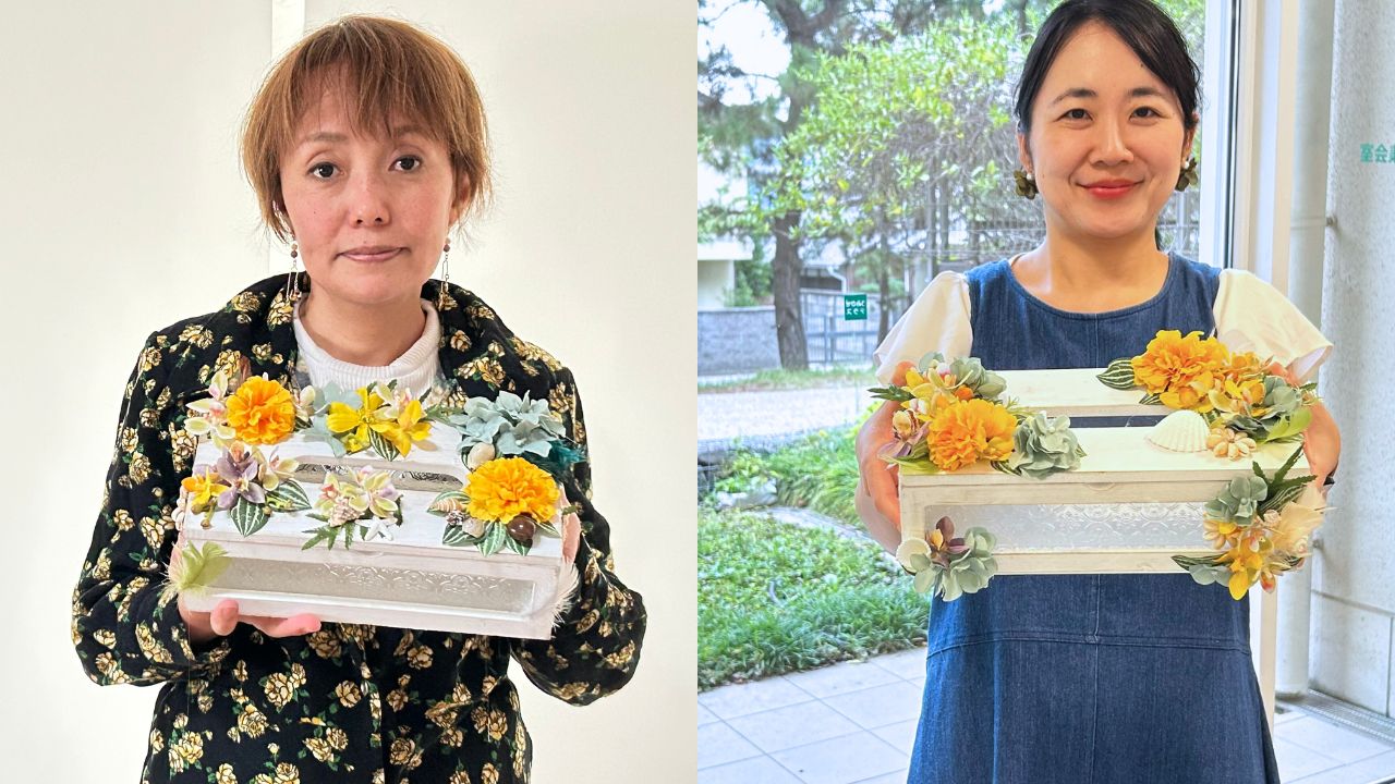 10月のマンスリーフラワーレッスンは、ハワイの風を感じられるようなティッシュBOXを作りました。