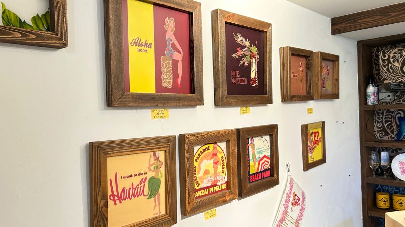初めて伺った時に、ハワイアンな素敵なイラストの額を見つけました。