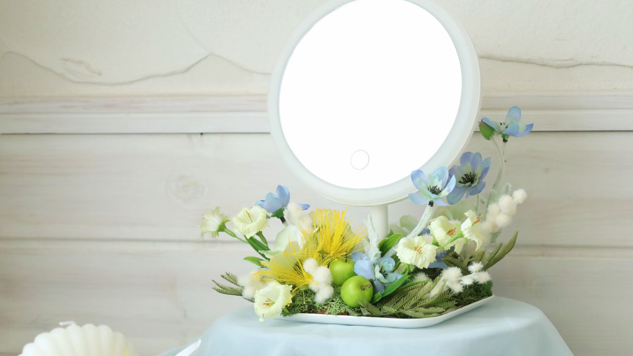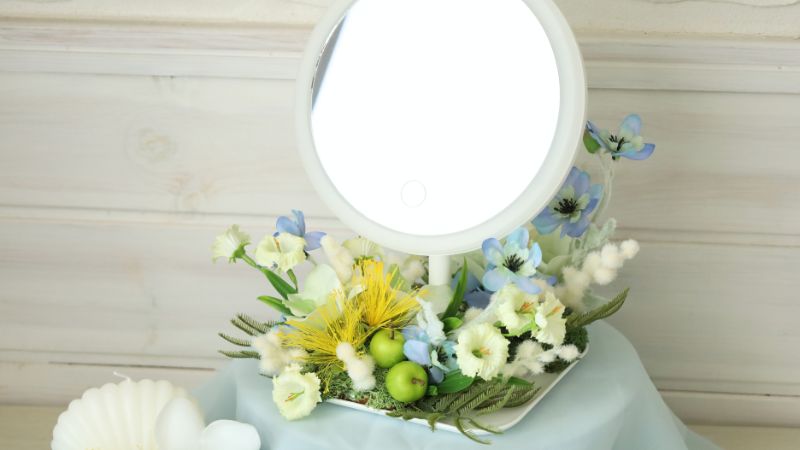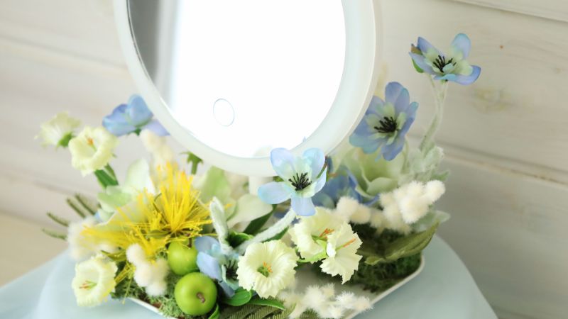 トレー付き&LEDライトの置き鏡を使ったアレンジ