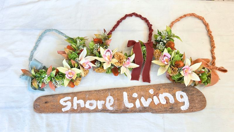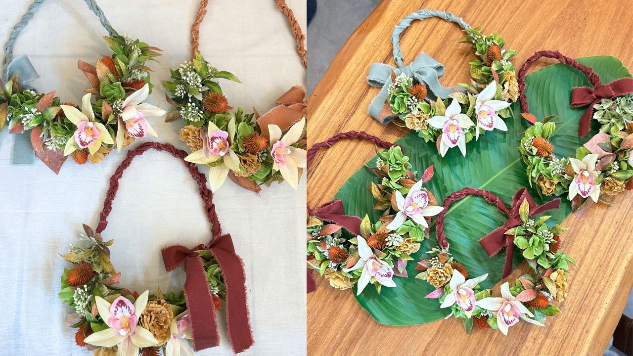 「レイ=首にかけるもの」というイメージがありますが、今回はインテリアとして楽しめるスタイルにアレンジしています✨