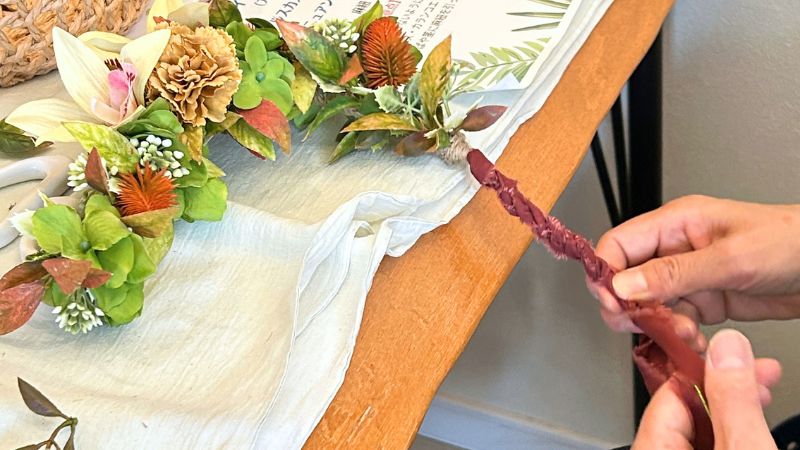 私は「お花の部分が難しいかな」と思っていたのですが、実際はリボンの工程に苦戦される方も多くいらっしゃいました。